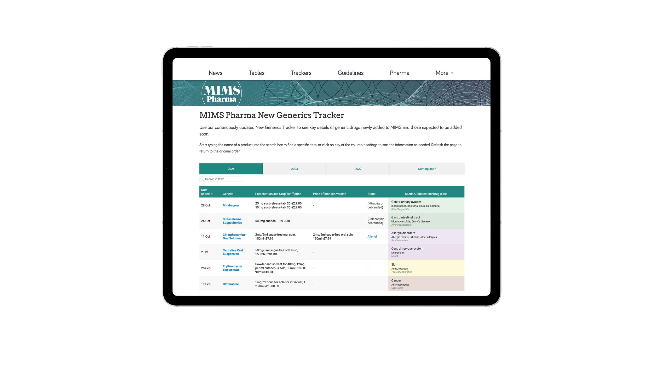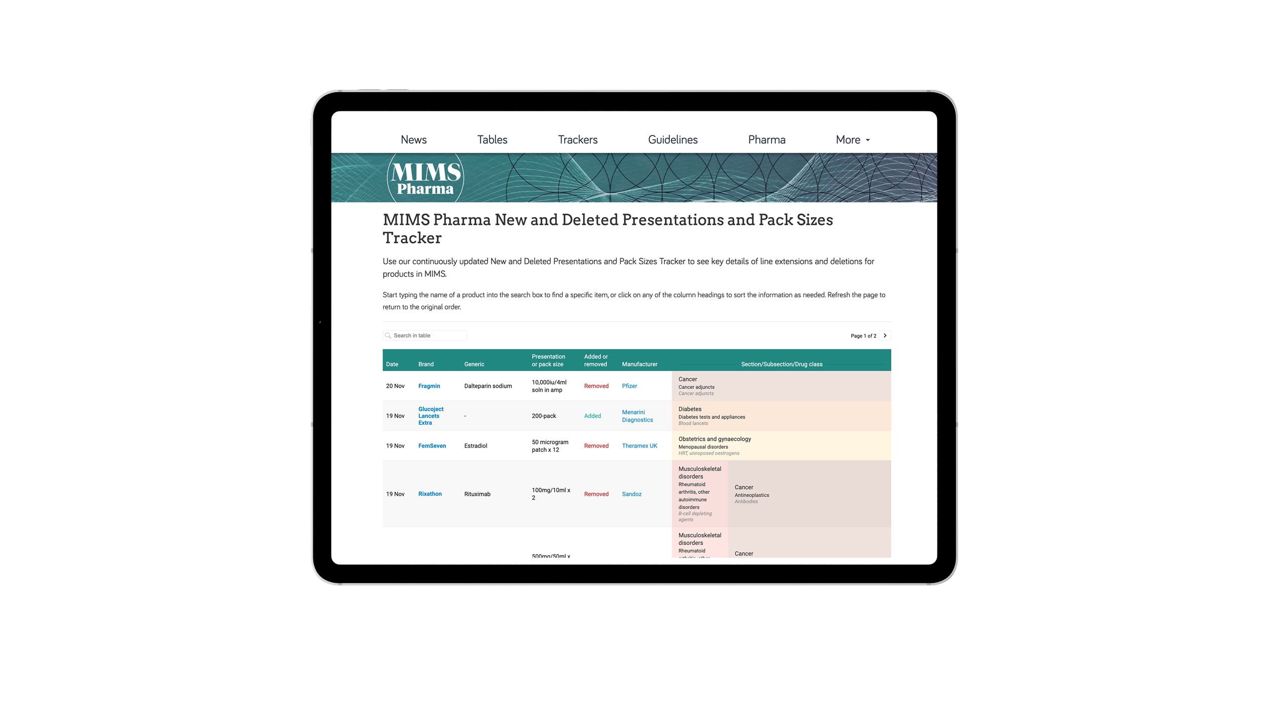 Our live product trackers are continually updated to provide critical data on drug availability, licensing and pricing