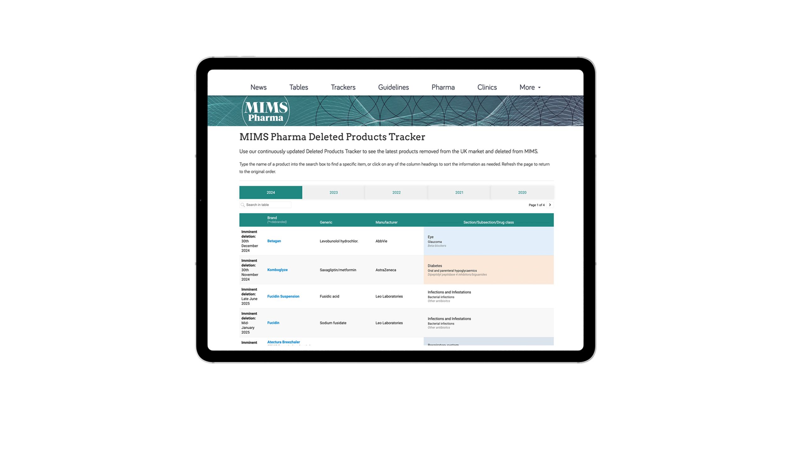 Track products removed from the UK market and deleted from MIMS