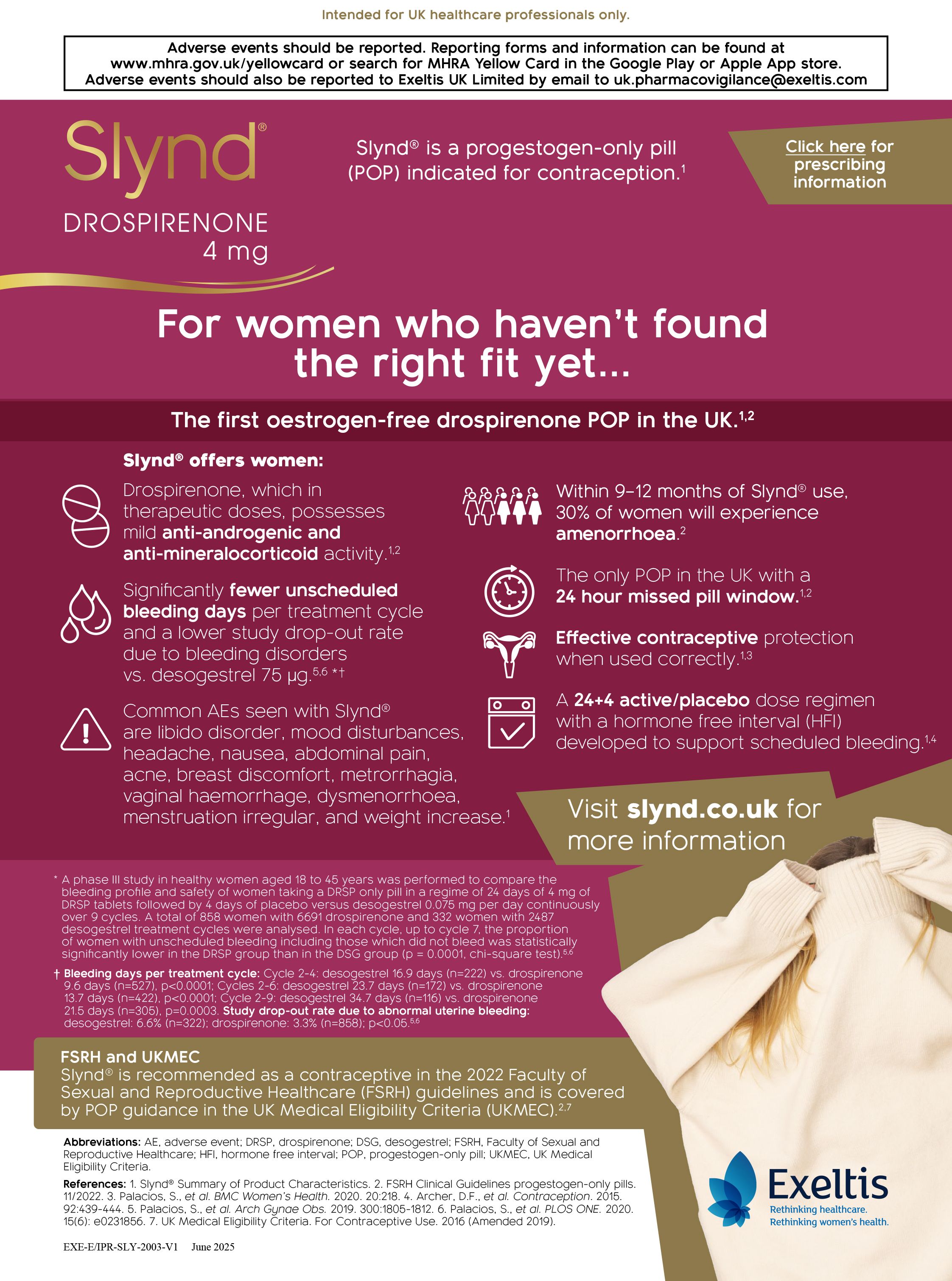 - FSRH. FSRH Guideline. Contraception for women aged over 40 years. Last updated May 2025. Last accessed July 2025.