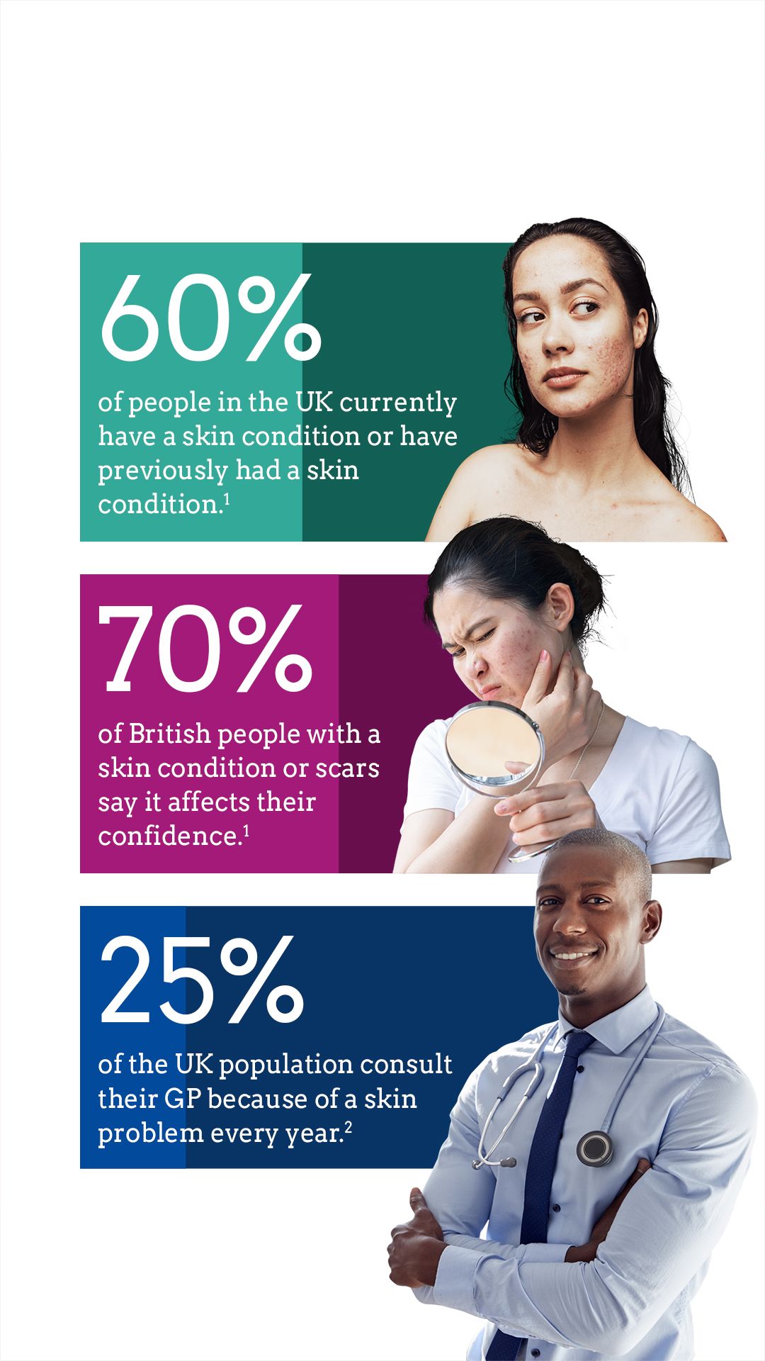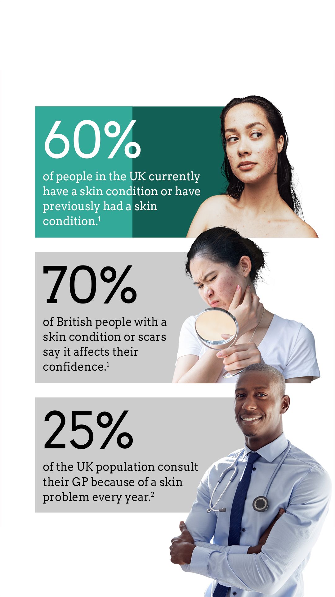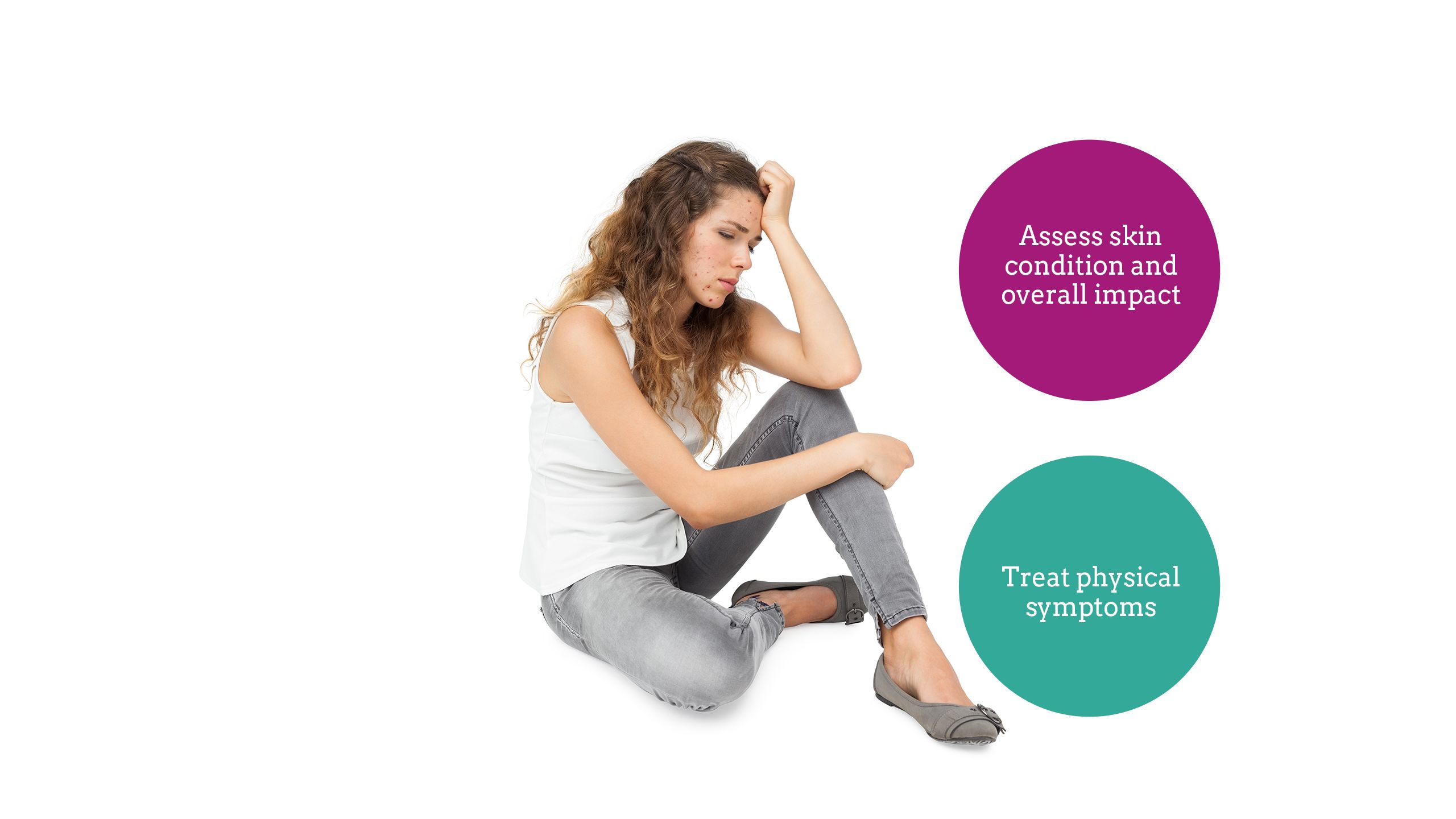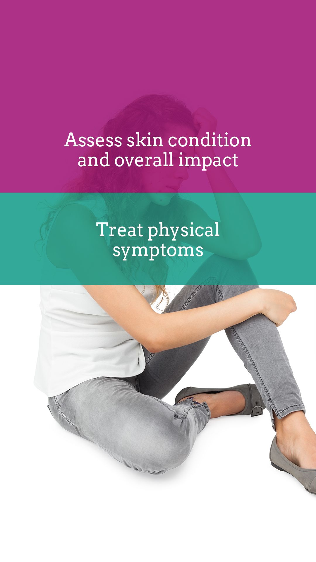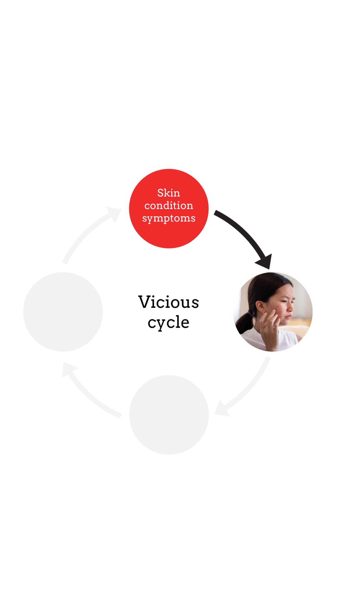 Treating the skin condition is the first step in management but it doesn’t end there.3 The burden of living with a skin condition impacts multiple areas of life from physical health, such as sleep, through to emotional wellbeing and social functioning.2
