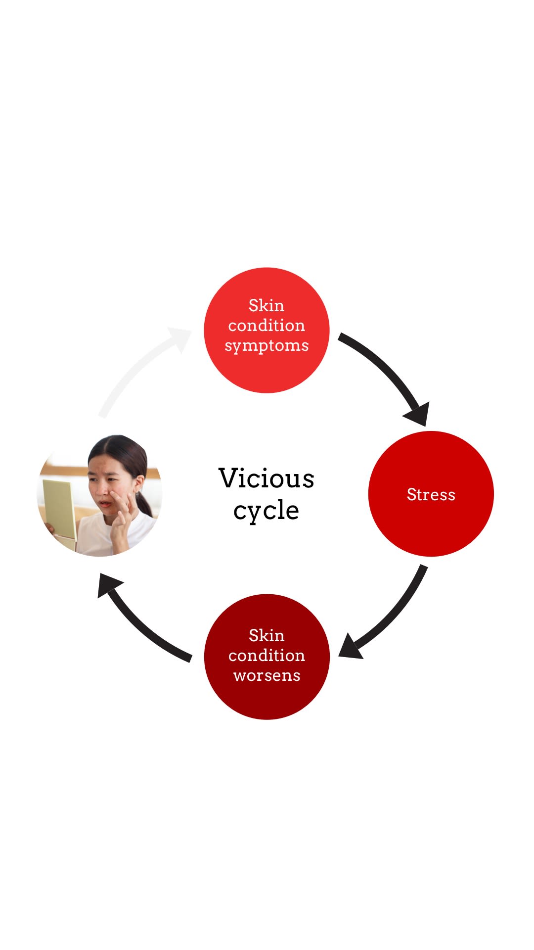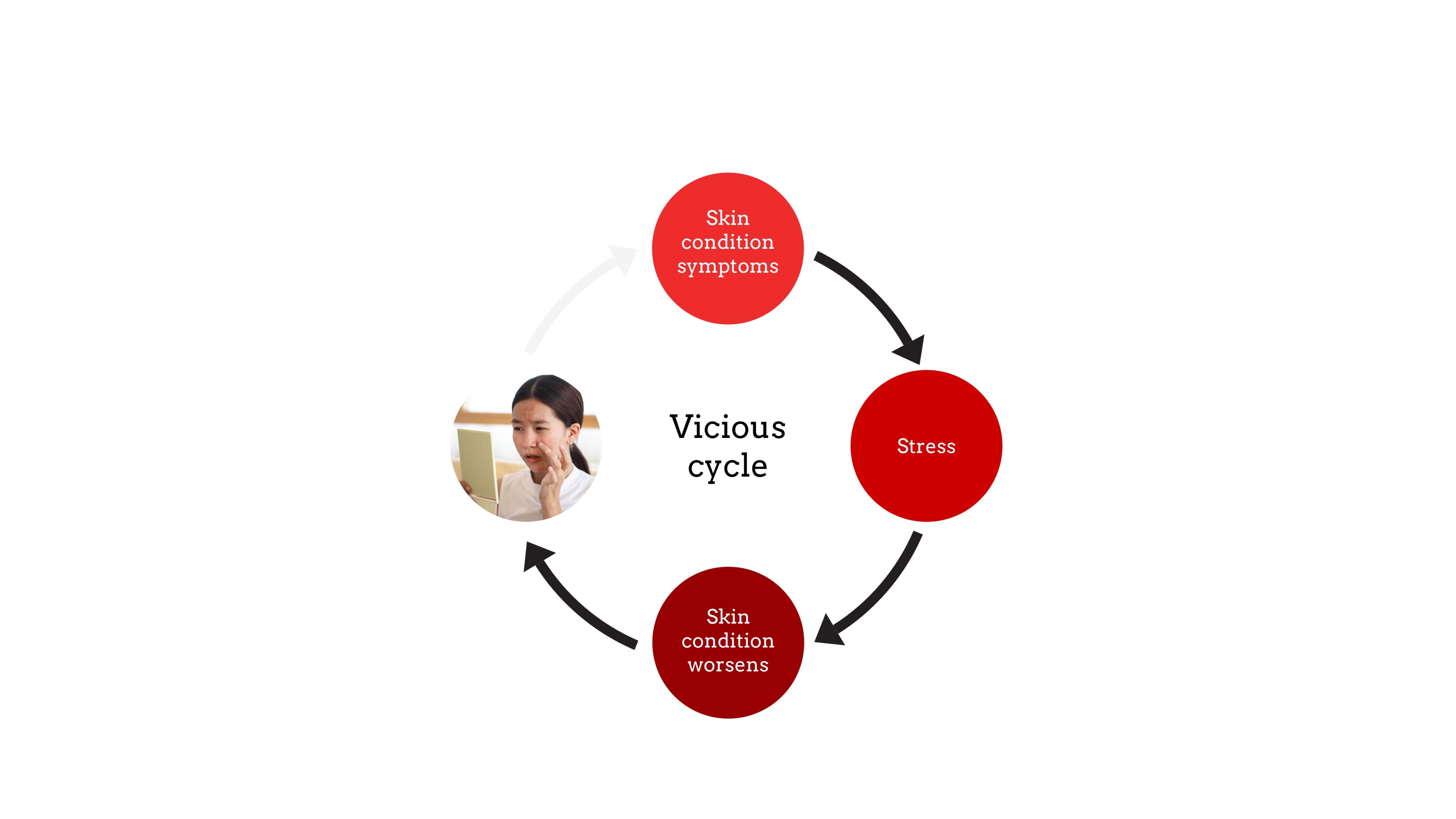 Many patients with chronic inflammatory skin conditions such as eczema or rosacea, which have a relapsing and remitting nature, often report stress as a trigger for flare-ups.6–8