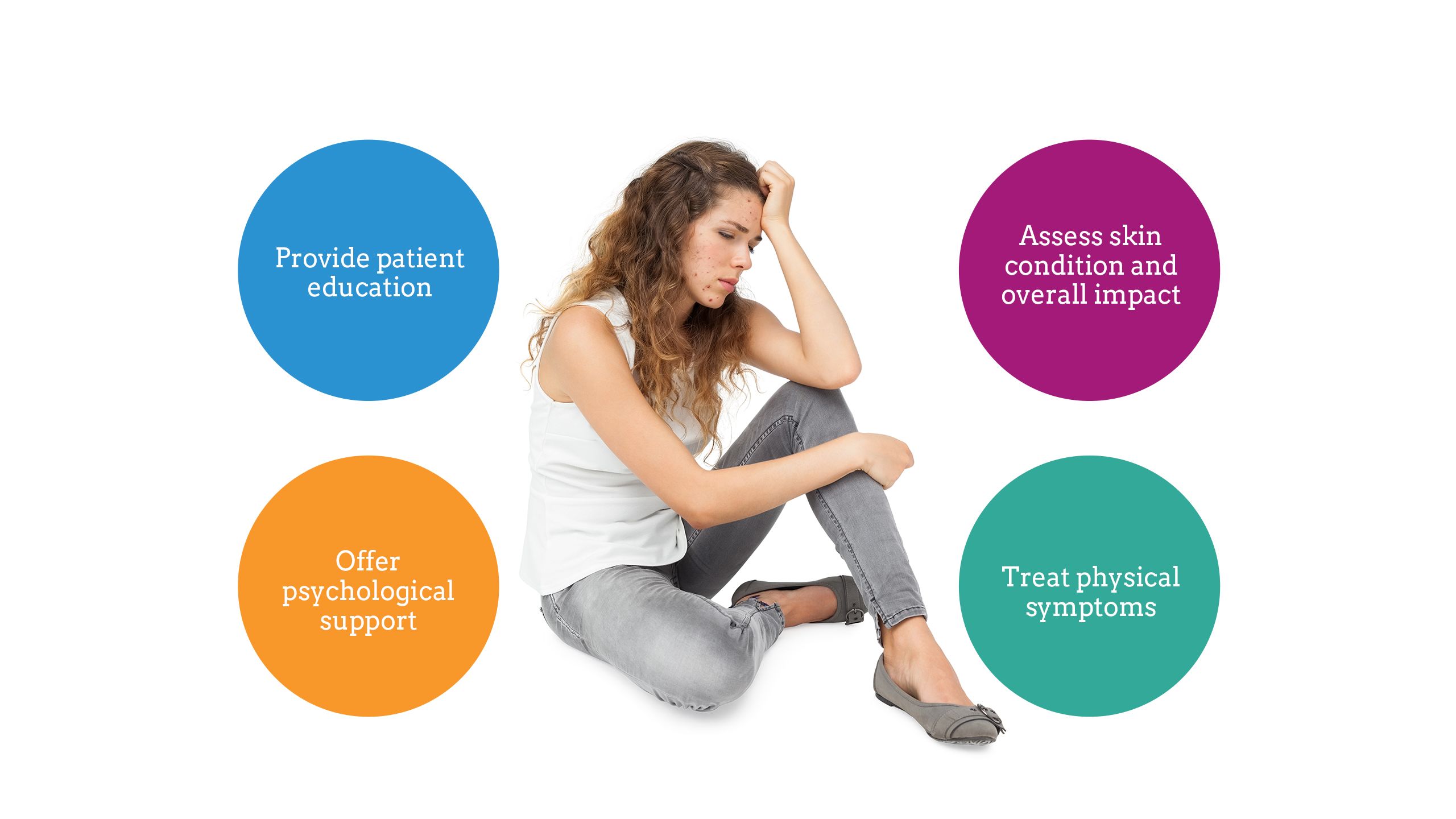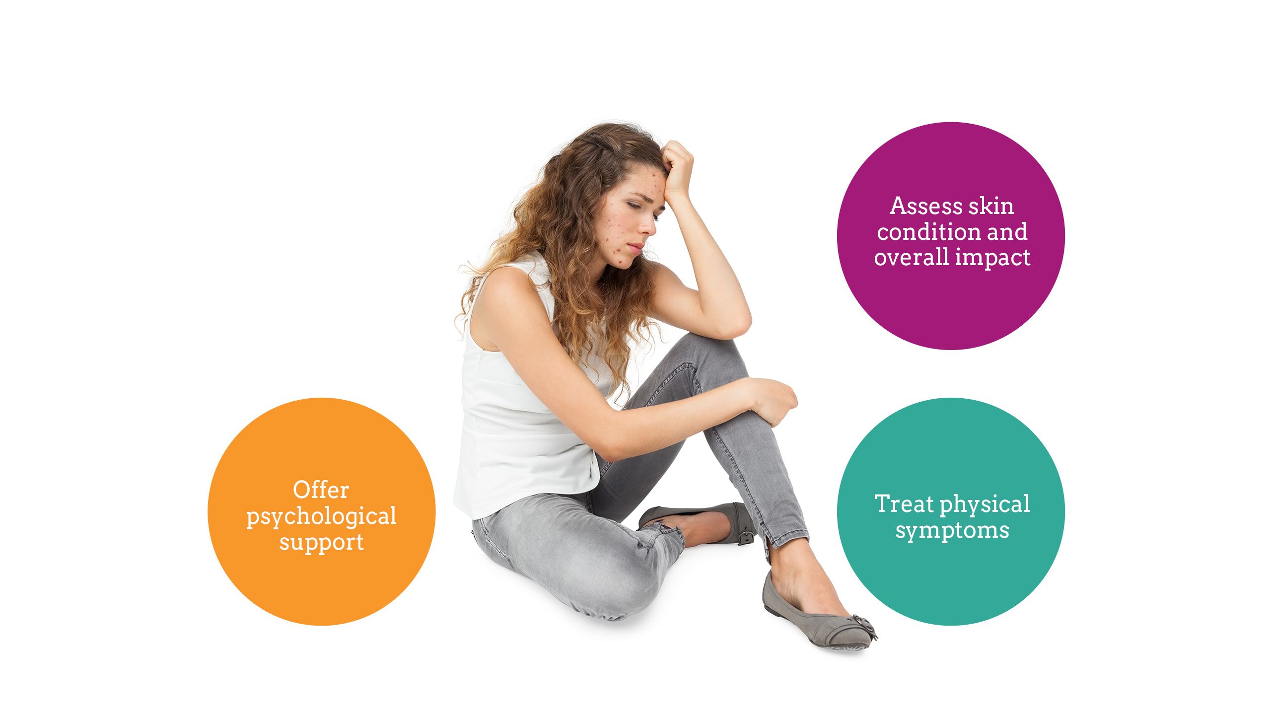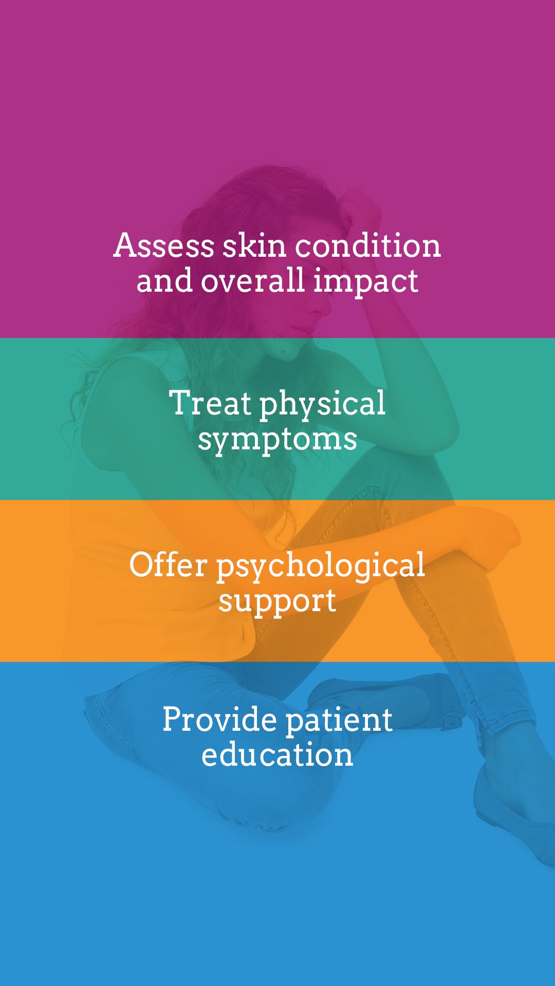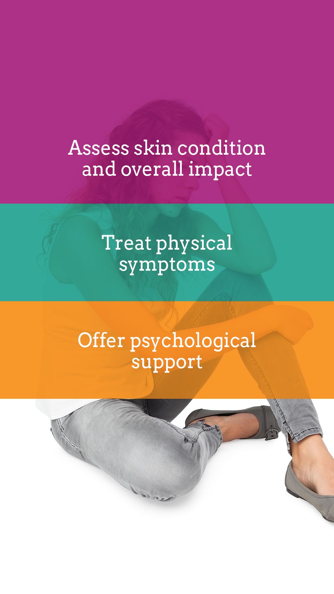 A holistic management approach that encompasses all aspects of living with a skin condition, including the patient’s emotional and psychological needs, should be taken to improve patient outcomes and wellbeing.3
