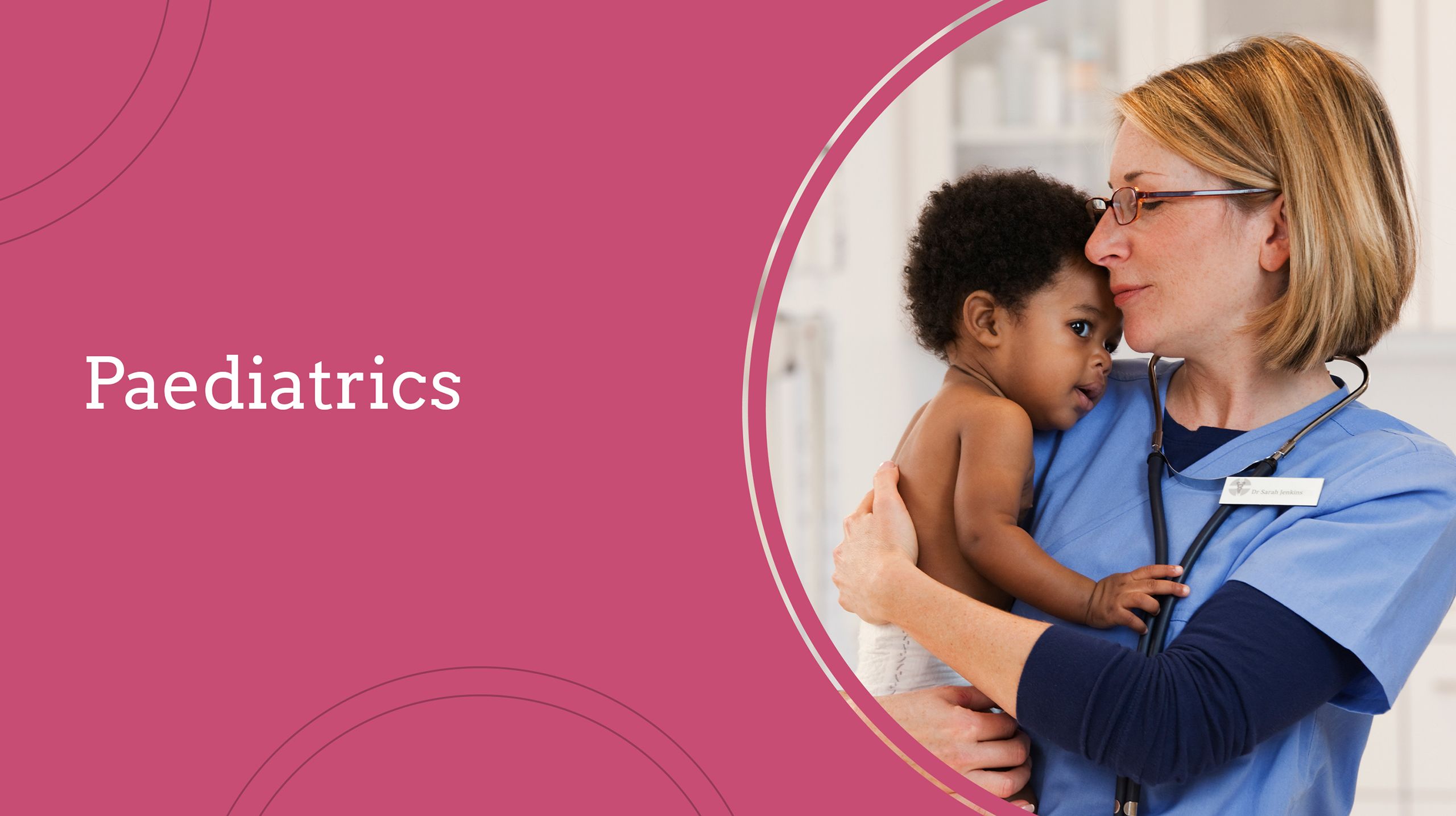 The paediatrics page covers infectious diseases, as well as skin, gastrointestinal and neurological conditions in children, with case studies, clinical reviews, and NICE guidelines relevant to this patient population.