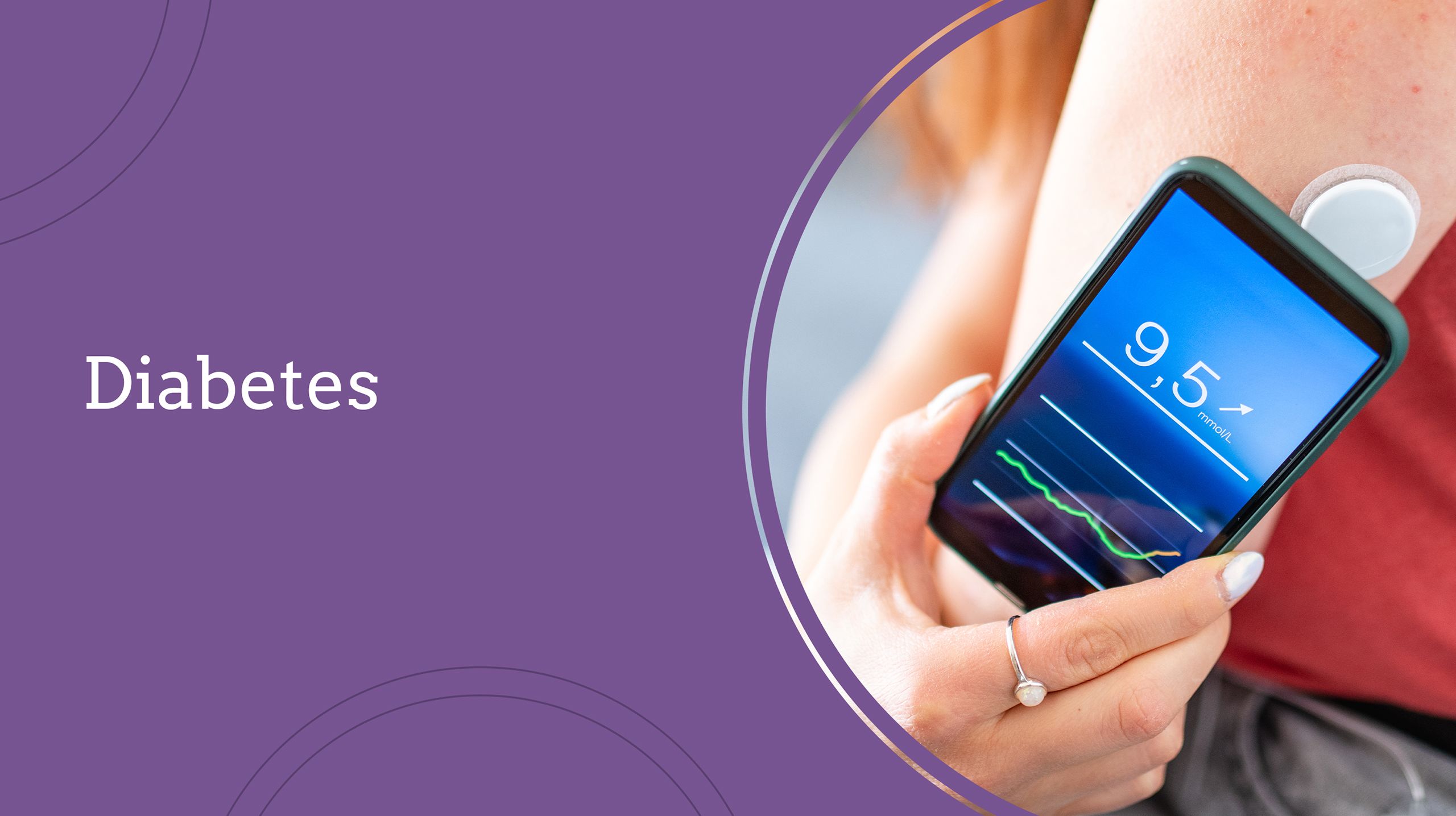 The diabetes page covers both type 1 and 2 diabetes. It looks at diabetes-related complications, diabetic emergencies, and diabetes at different stages of life.