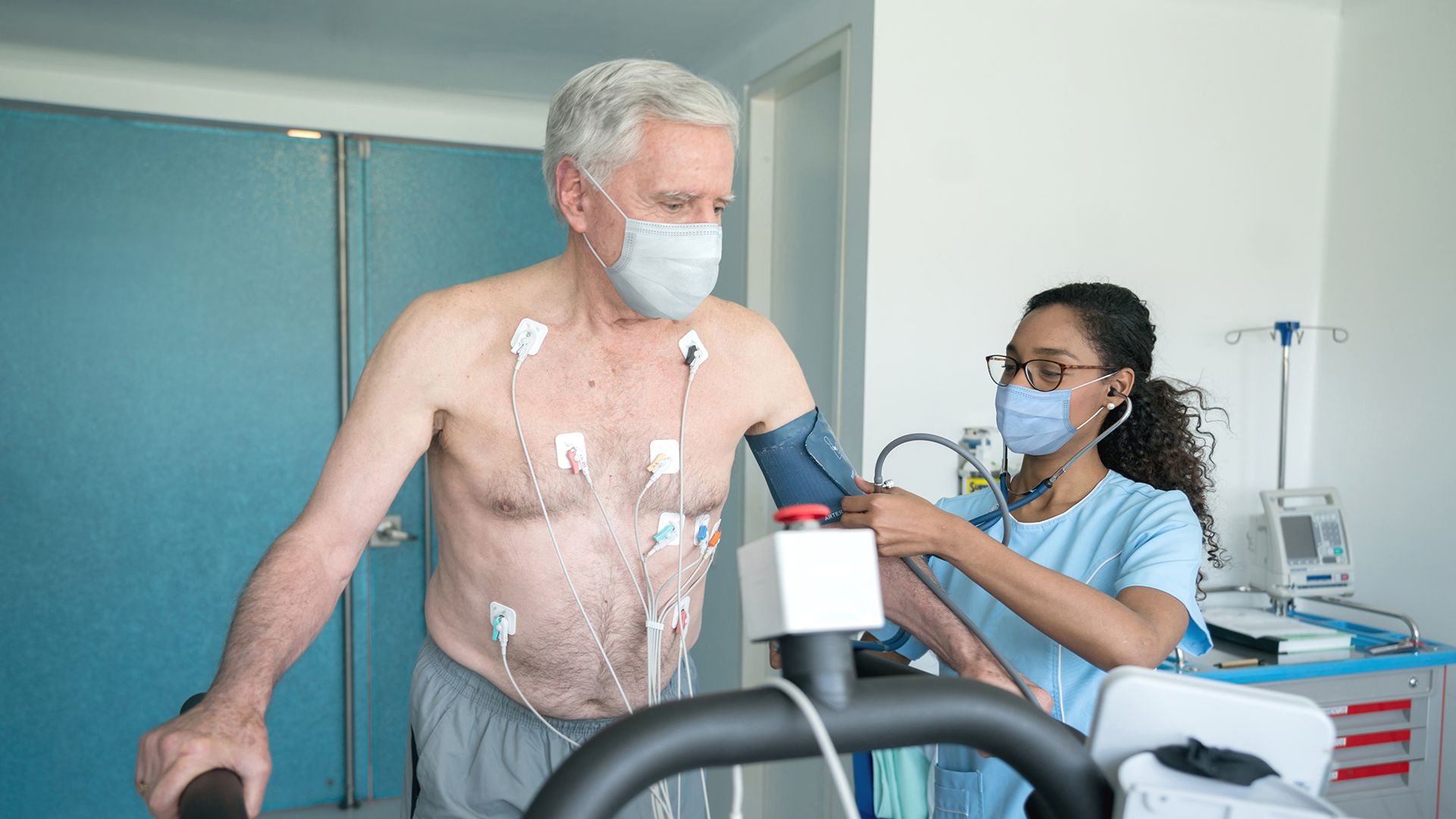 The initial assessment should include exercise testing. The aim of exercise testing is to determine a patient’s maximum exercise tolerability — for example, their maximum voluntary oxygen uptake (VO2 max) — so that an individualised exercise programme can be designed at the appropriate intensity for the patient. Exercise testing can be in the form of a cardiopulmonary exercise test (CPET) or a field walking test, such as the incremental shuttle walking test or the six-minute walking test.